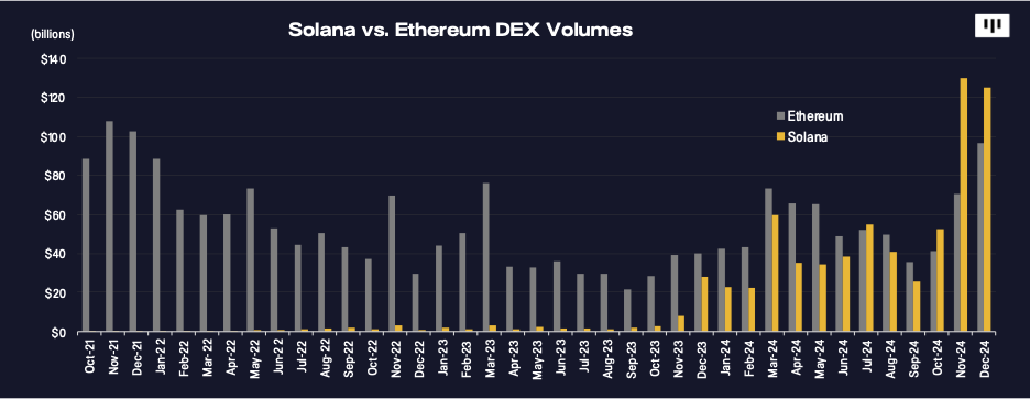 Trading dominance: Solana's main decentralized exchange (Raydium) became the top exchange globally, processing $125 billion in November alone.
