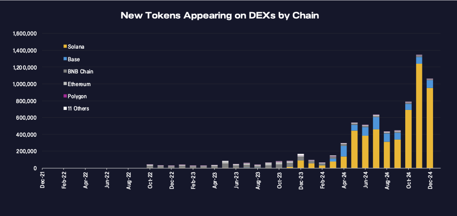 The token creation ecosystem we highlighted last quarter kept growing fast. Solana went from under 1% of new tokens in late2023 to over 90% of new DEX tokens today, showing how its technical strengths are drawing in new builders and traders.